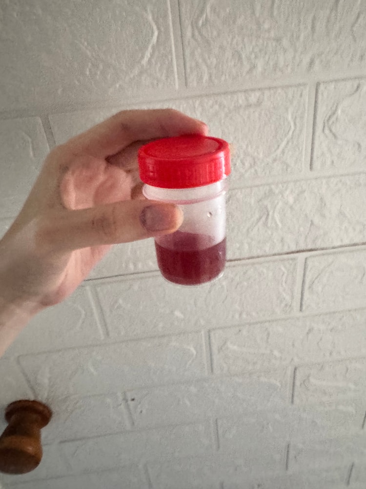 Съездила в приемник , посмотрели малыша , с ним все ок, приехала домой , сходила в туалет в баночку на всякий случай , а там кровь вместо мочи, причем выделений из влагалища нет. Жду скорую 😢