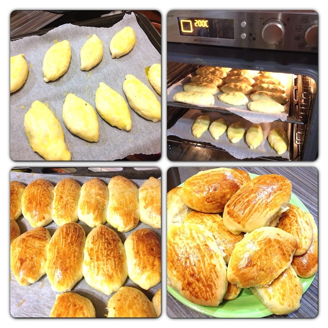 Противень смазать растительным маслом, выложить на него пирожки. Взбить яйцо, смазать им пирожки.