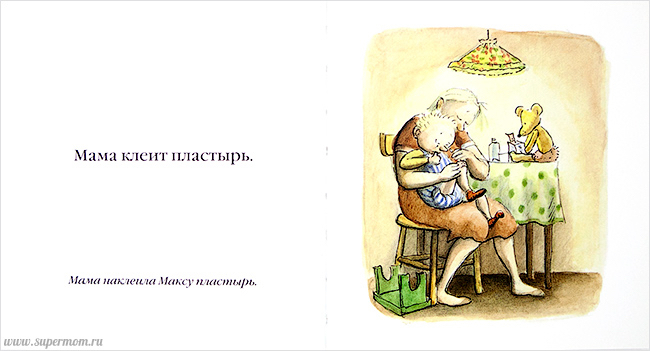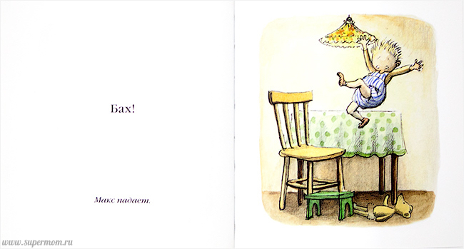 Малюсенькие книжульки размером с блюдце, очень любимые моим сыном и нелюбимые остальными членами семьи за непропорционального мальчика с огромным подгузником. Но я купила их все, потому что книг, покрывающих возраст 1,6-2 года очень мало, и это тот редкий случай, когда отталкиваться надо от интересов ребенка. В прошлом посте я не очень лестно отозвалась про эту серию книг, но интерес Толи заставил меня передумать. На каждой странице по строчке. Истории совсем простые. Условно: Макс увидел лампу, Макс захотел потрогать лампу, Макс залез на стол, Макс упал, Максу больно, мама пожалела Макса, всё прошло. Рекомендую приобретать эти книги в строго определенный возраст. После 2 лет будет уже поздновато.
