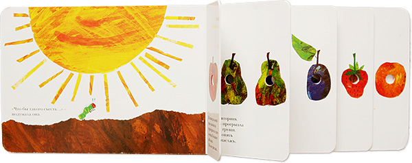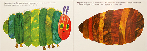 Гусеница всю книгу пыталась наесться, ела то одно, то другое, то третье.