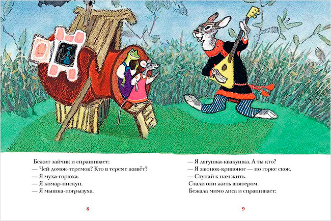 Книга понятна всем и каждому. Мы читали ее с года и до полутора почти каждый день, и каждый раз находили в иллюстрациях что-то новое. Текста в книге всего строчек десять, зато картинки Васнецова заставляют возвращаться к ней снова и снова.