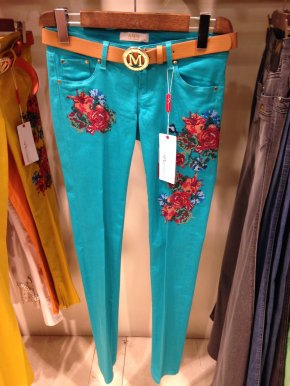 Брючки плотные (коттон+срейч), очень хорошо тянутся. Размер 30 (наш 46- 48). Цветы на брюках вышиты (очень красиво смотрится). Покупала в СП. Есть живое фото под катом. Хорошо утягивают всё лишнее))