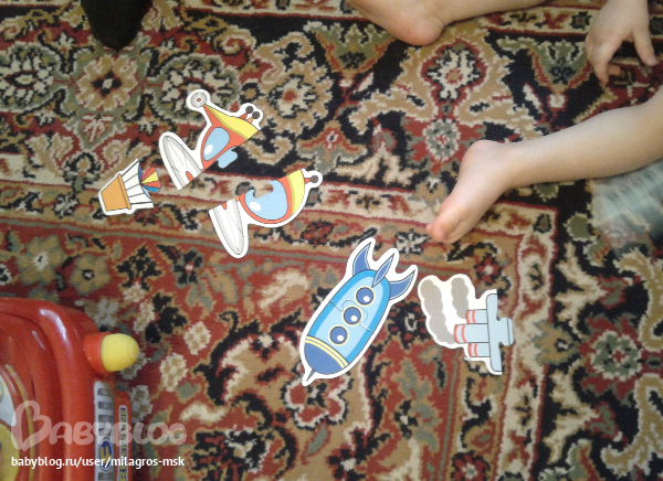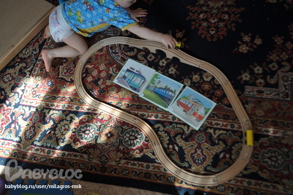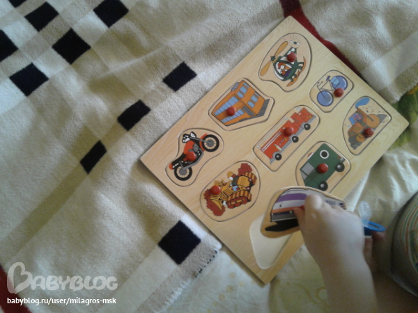 Играли с вкладышами "Транспорт", больше понравилось просто рассматривать и раскидывать=)