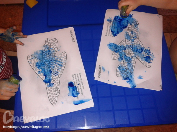 Мама показывала, как летает самолет (бегала по комнате с вытянутыли руками, чем очень позабавила детей=))))), учились делать как самолет "Уууууууууу".