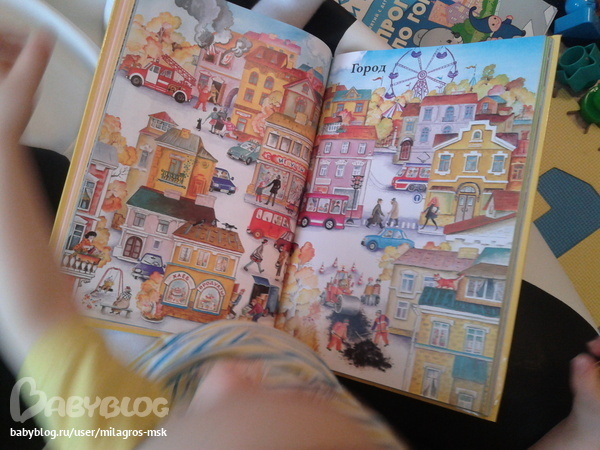 Разворот "Город" этой книги особо понравился, трамвай больше всего понравился.