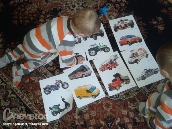 Смотрели , искали знакомые машинки. Занятие затянулось на весь день, карточки так на полу и лежали, дети подходили и тыкали пальчиками.