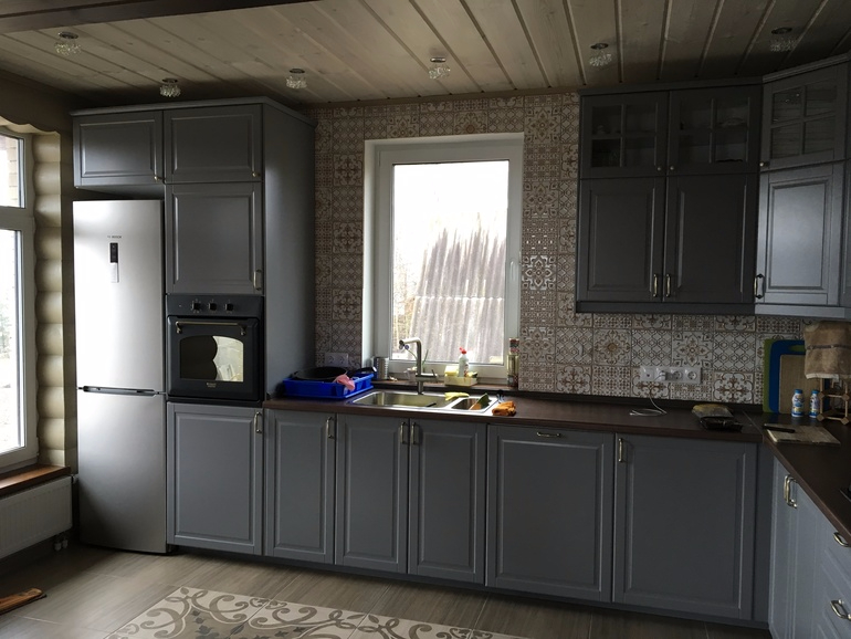 Изначально хотела белую, но влюбилась в серую. Икеа Будбин. Очень понравился вот такой вариант, поделилась девочка с бб своей кухней.