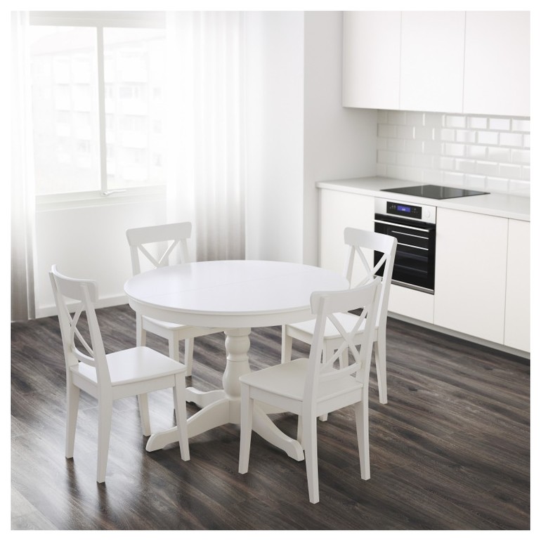 Стол круглый и стулья, Икеа. Мечтаааа! Но надо подумать как подружить серую кухню с темным фартуком и белую обеденную группу. Пока салфетки и чехлы на стулья в голове.