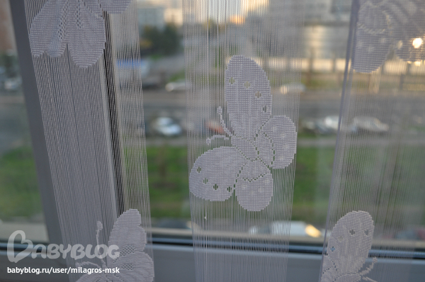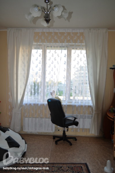 Как же я рада, что наконец-то оформила нормально окно в комнате! До этого висела никакая голубая тюль и синий ламбрекен сверху. Ни то, ни сё. А потом мамкая моя в Леруа Мерлен ИЗВИНЯЮСЬ, НАПУТАЛА, МАГАЗИН К-РАЙТА нашла обалденную тюль с бабочками! Стоит всего 1000 р, 3х3 м. И очень удобно теперь обращаться с окном, ничего двигать не надо. И дети рады, всегда в окошко можно посмотреть из любой точки.