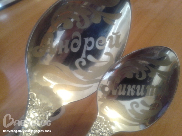 Вчера дедушка подарил нам именные ложки!!! Очень приятный подарок для семьи, обрадовались все: и мы с мужем, и дети. У каждого теперь своя персональная=) Маме и папе столовая, а детям чайная.