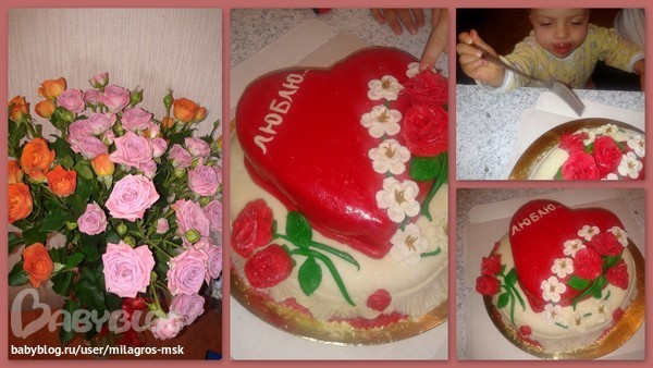 Отметили очень скромно: вино, курица в духовке в медовом маринаде и салат а-ля греческий. Ну и самым сладких в течение дня был наш тортик. Подарки как-то не хотелось, да и денег сейчас на баловство нет особо, а вот приятный и вкусный подарок для нашей семьи мы себе сделали=))