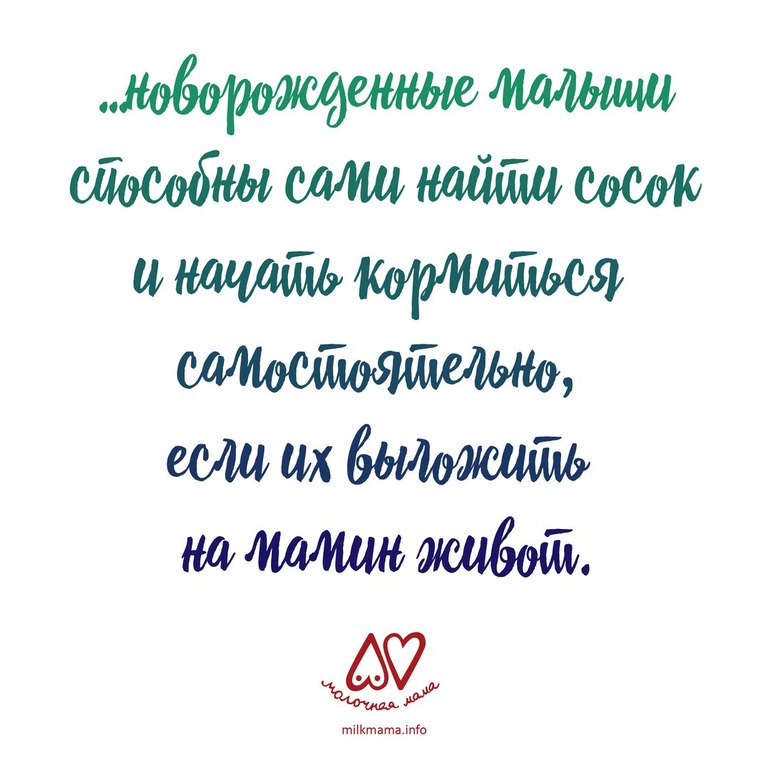 Новорожденные малыши способны сами доползти до маминой груди, найти сосок и начать кормиться самостоятельно, если сразу после родов их положить на мамин живот.