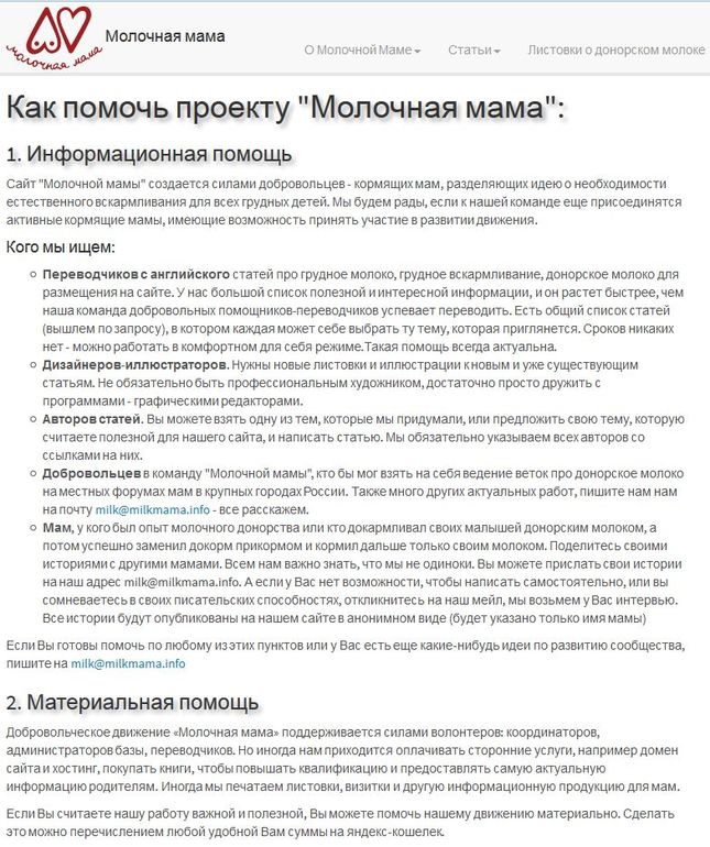 «Молочная мама» - добровольческое движение. Мы работаем бесплатно на добровольных началах. У нас нет никаких спонсоров.