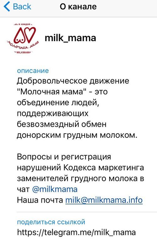 Ура! Мы добрались до освоения мессенджеров :) И открыли публичный канал в Telegram https://telegram.me/milk_mama