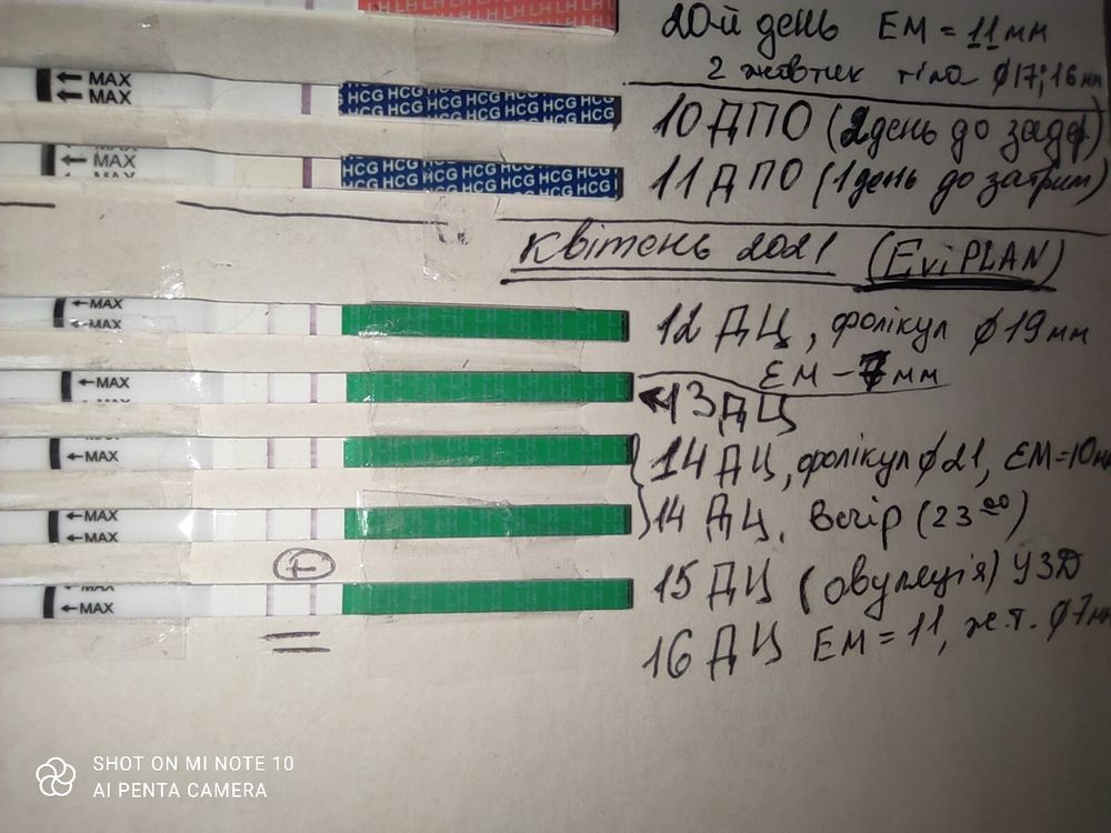 Ylia Go, если цикл 28-30 как у меня то делайте с 10-11 пока не будет жирной полоски .Мой цикл 30 дней. Первое фото это Март, второе - апрель. На первом Home test (чувствительность 15 мМе), второй Евиплан (25 мМе)