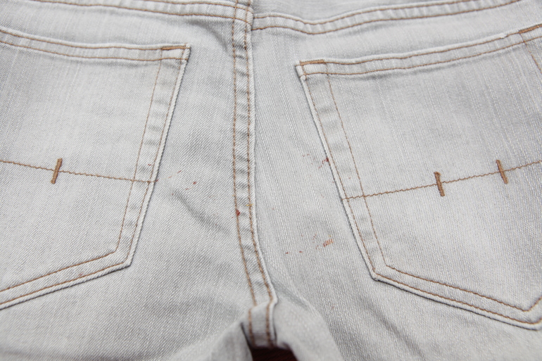 пятнышки неизвесного происхождения, но под цвет штанов )) в остальном в идеале