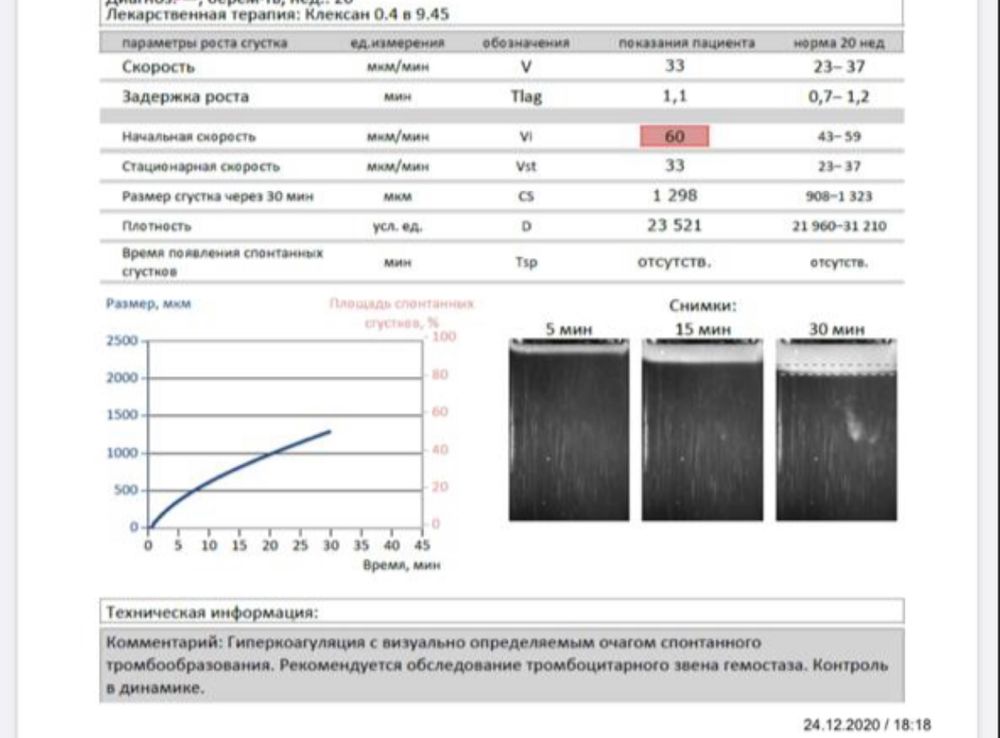 сейчас картина изменилась и неприятная ,тромбодинамика тоже показывает изменения «гиперкоагуляция,с визуально определяемым очагом спонтанного тромбообразования» (прикрепляю фото тр-динам)
