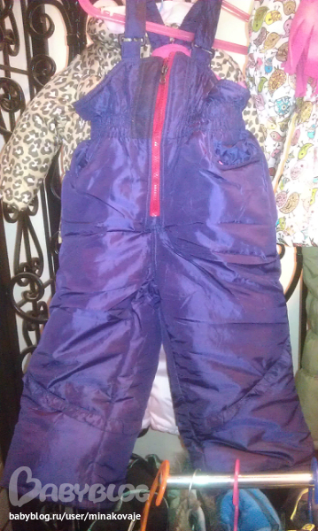Мех натуральный(отстёгивается) материал плотный , на руковах резинки и на штанах внутри тоже резинки, полукомбинезон со спинкой , внутри флисовая подкладка
