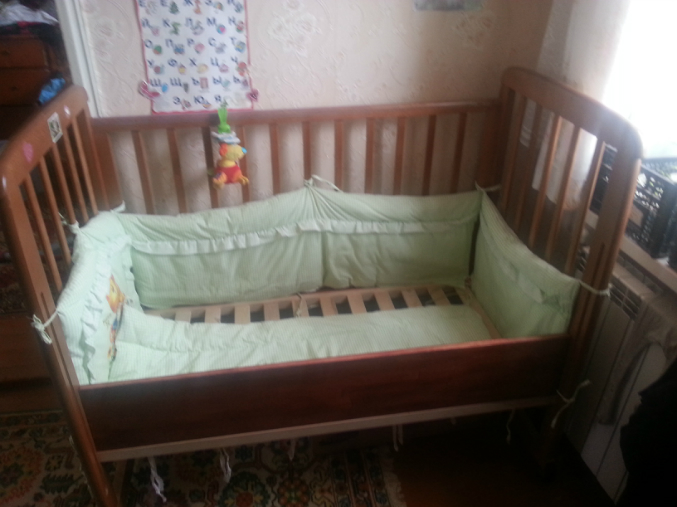 Было решено,что надо сделать маленький бортик на кроватку Леры,чтобы она не выпадала во сне и залезть сама могла. Дочка давно спит без борта кроватки,на сон подвязывали бортиком мягким. Под катом,что было и что стало + замученный кот)