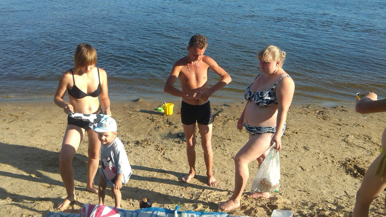 Слева на право Зина (жена брата мужа),Влада (племяшка/именинница) ,Вася (старший брат мужа и отец Влады), пузатая я