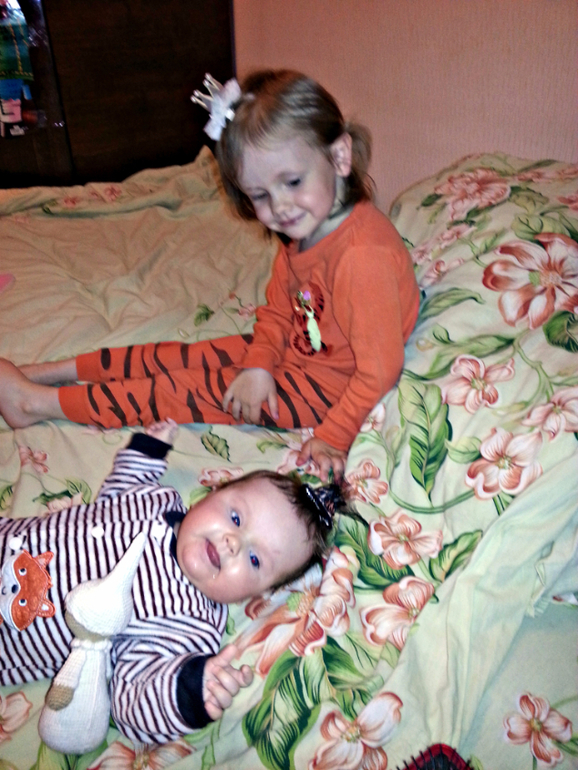Лерка такая хорошенькая с длинными волосами и бантами. Наконец-то вы отрастили :)) Они у неё еще и кудрявятся, что ли?