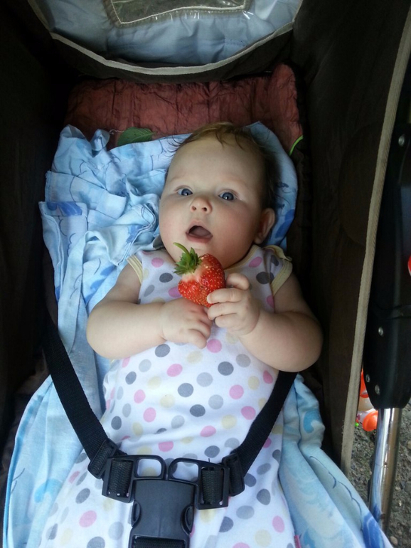 а у меня обе чуфанят как за здрасти! Только принесу с улицы- уже нету. ну у меня не виктория- клубника. маленькая такая и ароматная. Поля сама берет руками и ест — будешь пихать- выплюнет)) Алисе уже не чищу- большая ж))