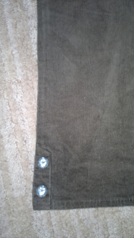 по бокам имеются пуговицы,можно сделать капри подвернув и накинуть на петлю.