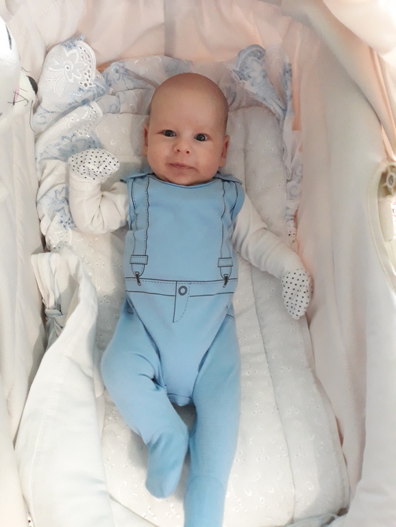 Степе полтора месяца. Мальчик он капризный, мучают колики. Первые недели три после выписки из роддома было конечно тяжеловато, отвыкла я от маленьких детишек, к тому же с первым сыном было легче, его живот не мучал и он был спокойнее. В некоторые дни прям казалось щас сорвусь и заплачу, постоянно с ребенком на руках, ничего почти не могла делать, а надо и старшего сына покормить, помыть, ужин мужу сготовить и обед на работу собрать, постирать, погладить, помыть посуду, убраться и из за того что все это накапливалось какое то депрессивные состояние начиналось. Через месяц я уже привыкла, щас через полтора ещё больше привыкла стало полегче, Степочка поменьше капризничает, купили ему коврик развивающий, он теперь на нем лежит, смотрит, радуется, руками ногами дрыгает, может час лежать там спокойно и так несколько раз за день. Мы на гв, днем ест через каждые полтора часа примерно, ночью через 2-3 часа, но это пока не стабильно все, может и через час просыпаться плакать,колики его мучают часто, постоянно пукает, весь сгинается, краснеет и плачет от этого, и сон я думаю от этого такой плохой, днем спит по минут 40,иногда по часу, редко больше и беспокойно спит, просыпается, хнычет, на мне спит лучше и ночью частенько на мне спит, по другому не успокоить. Спим мы с ним вместе в отдельной комнате от мужа со старшим сыном. Но в целом все не так плохо, я вообщем то более менее высыпаюсь и не очень прям устаю. Знаю что с каждым месяцем будет лучше становится. Степа уже умеет переворачиваться с живота на спину, и на бока поворачивается, головку держит подолгу лёжа на