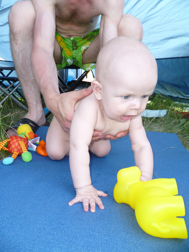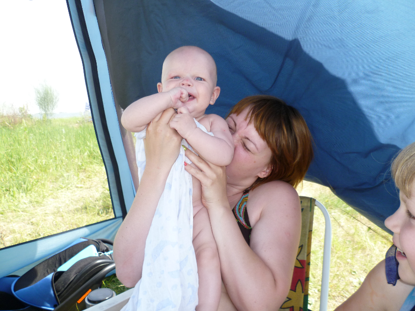 Днем жара, в шатре тенек и ветерок.. там его удавалось укачать на сон (хотя б на 30 м. и то хорошо), а ночью он вырубился. И все. вот и все)) Вел себя хорошо. Общался со всеми отобрал яблоко у меня. И постоянно еду требует.... В принципе я не могу судить понравилось ему или нет. Мне лично - да. Планирую и след. выхи уехать =)