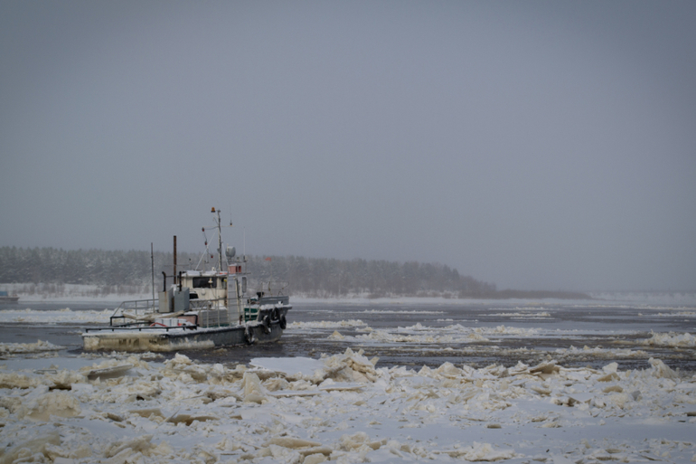 Так называемая распутица на реке Иртыш. Люди стоят и ждут пока этот Краб 7 сможет их переправить на другой берег. Мы там были минут 20, а он все пытался пришвартоваться..