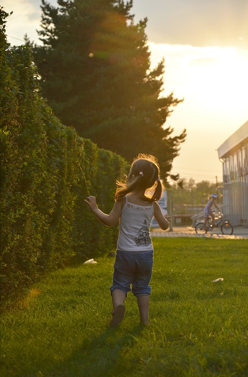 Стою, Алена у меня на руках, резко берет мое лицо в руки и поворачивает на 180º, при этом чуть мне шею не сворачивая: мамочка, смотри туда, там маленький мотулёк( мотылёк)