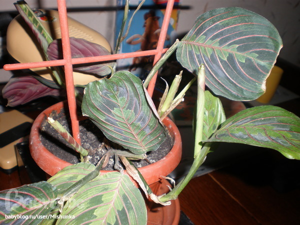 Девочки,помогите!!!Пересохла маранта,но потом вроде как отошла,листики новые пустила.Верхние так и стоят вялые и закрученые.Может их обрезать,а цветок пересадить?