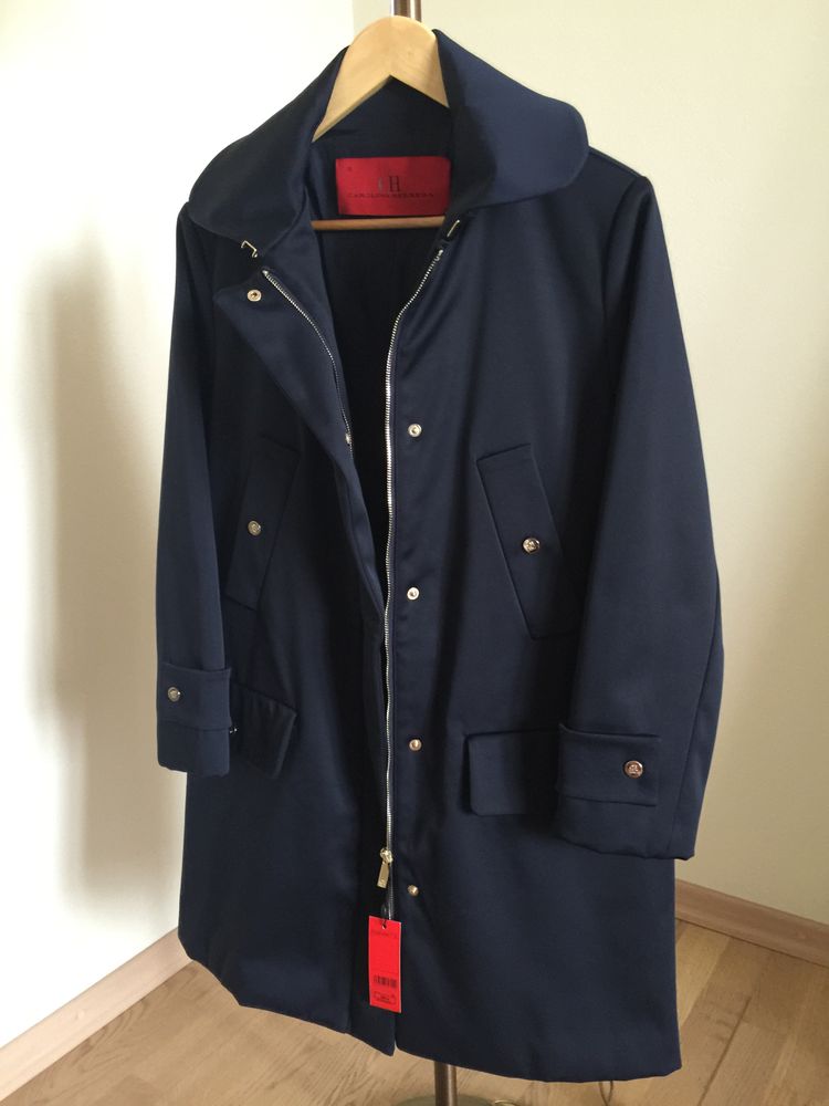 Продаётся совершенно новое, нарядное, темно-синие пальто из материала с атласным отливом испанского бренда Carolina Herrera на девушку или женщину 42-44 р-ра, не очень высокого роста.