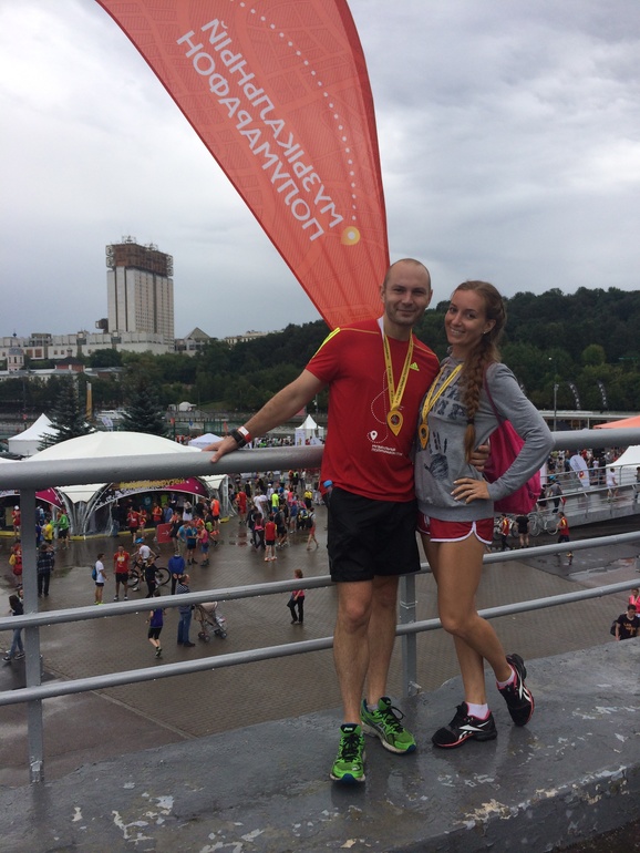 Изначально планировалось, что я побегу так, для удовольствия, но муж настолько распалил меня своим рвением улучшить личное время, что и я решила выложиться по полной, в итоге пробежала 10 км за 57 мин, не плохо для меня) Ноги, правда, болели ужасно потом, обычно я эту дистанцию пробегаю за 1,03-1,10 где-то и никогда ничего не болит))) И спать завалилась сразу как домой вернулись, хотя муж после своей дистанции вообще бодрячком был) Меня с непривычки коротнуло, видимо)))