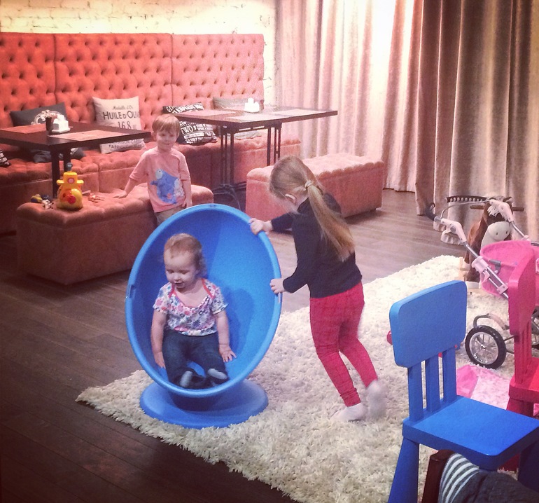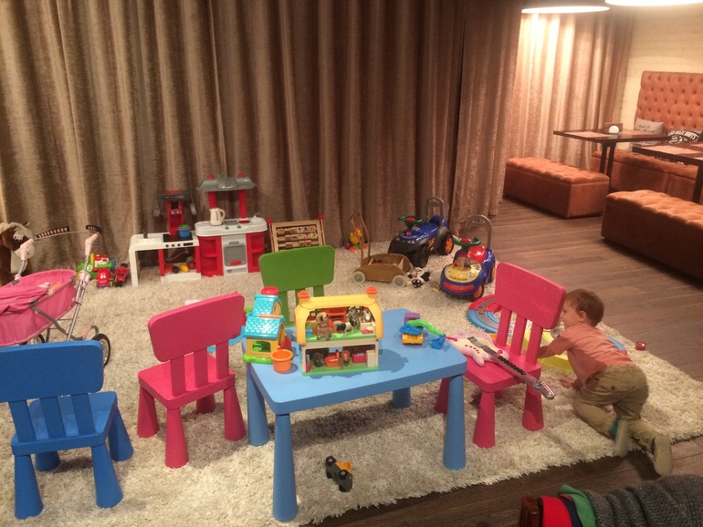 Классный ресторан! Зона childfree надежно отделена от зоны childrenfriendly, игровых аж две - одна для малышей, прямо у столиков, другая для старших деток, в отдельной комнате. При этом везде висят экраны, на которых видно, что происходит в детской. Сидишь и не переживаешь! Порядок!