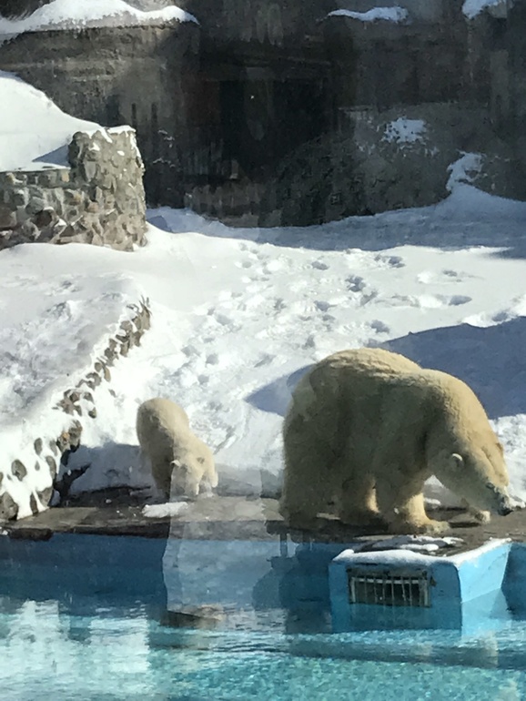 В конце декабря в нашем зоопарке родилась маленькая белая «медвежонка»))), за зиму подросла и теперь ее отпускают с мамой гулять по вольеру. Не могли не сходить , еле еле выходных дождались чтоб посмотреть на эту мелкую очаровашку ❤️, какая же она чудесная.