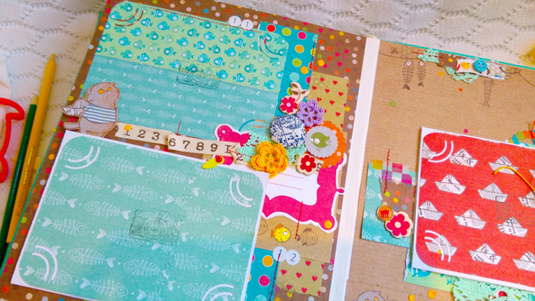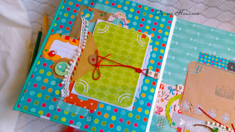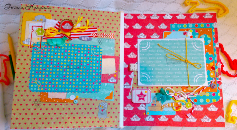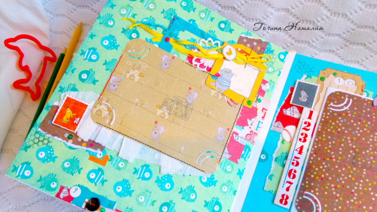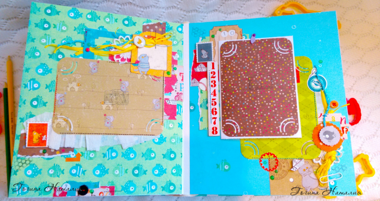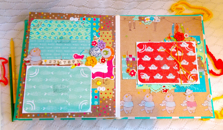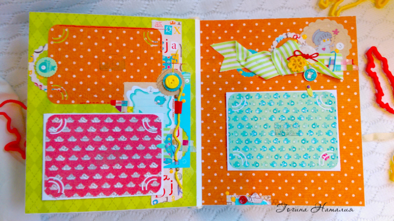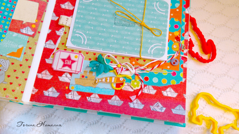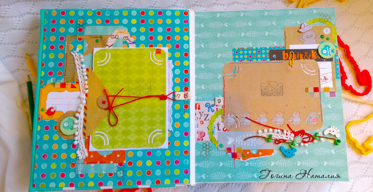 Привет,девочки,давно не показывала свои работы тут.Исправлюсь,покажу яркий альбом для малышка, коллекция бмаги Скрапберриз - "Басик". Формат 22на26 на 12 стр и около 40 фото