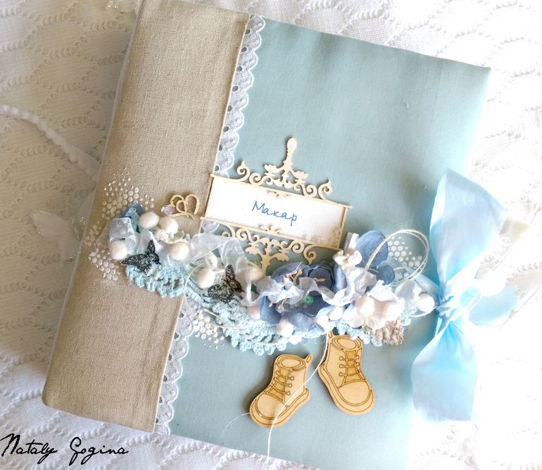Альбом особенный) для малыша, который совсем недавно появился на свет. Формат 23*27 см, 5 разворотов, 10 страниц, посвященных первому году жизни маленького мальчика. Теперь на моих альбомах будет красоваться текстурная паста, безумно понравился резльтат, она отлично подходит к детским альбомам имхо.