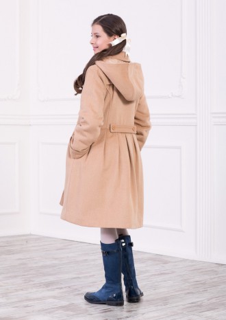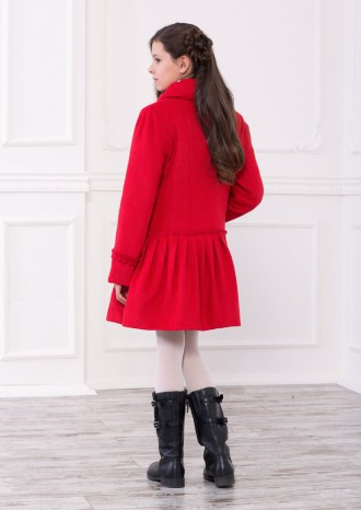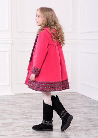 Невероятно красивое пальто на стеганной подкладке , утепленное халлофайбере для девочек. У пальто боковые карманы, двубортная застежка, съемный капюшон, регулируемые манжеты, отрезная линия талии с мелкой сборкой. Особенностью данной модели является ажурный цветочный орнамент в виде купона.