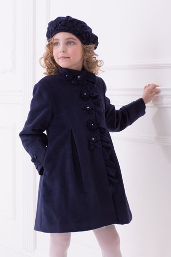 Стильный комплект для самого утонченного вкуса маленькой модницы - демисезонное пальто и берет. Комплект выполнен в благородном темно-синем цвете.