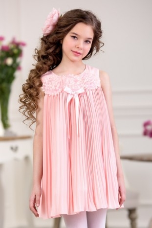 Нарядное воздушное платье для девочки будет актуально для любого праздничного мероприятия, будь то день рождения, выпускной в детском саду или начальной школе.Нарядное воздушное платье из шифоновой плиссерованной ткани нежных цветов, на кокетке. Кокетка платья украшена воздушными объемными цветочками и и бантиком из атласной ленты. На спинке потайная молния. Платье на подкладке.