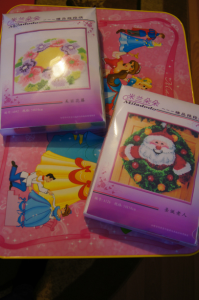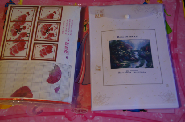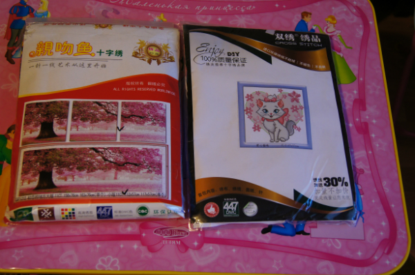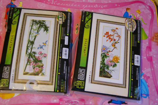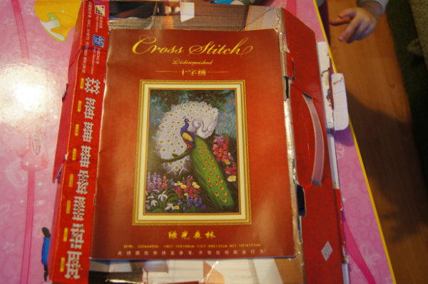Набор с павлинами, жаль, нитки не догадалсь сфоткать, они с добавлением шелка, очень красивые) Коробка правда погибла в муках при пересылке, вся помялась, но надеюсь, что коробка не главное для рукодельницы)))