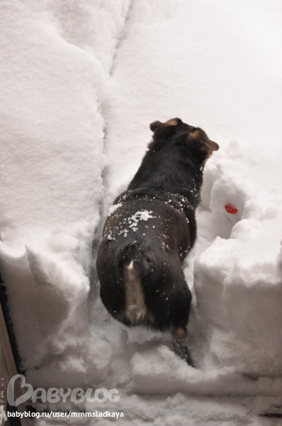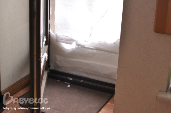 у нас сегодня ночью был снегопад..... кошмар в городе творится, кругом пробки и аварии, а вот что у нас за дверью (живем в доме)