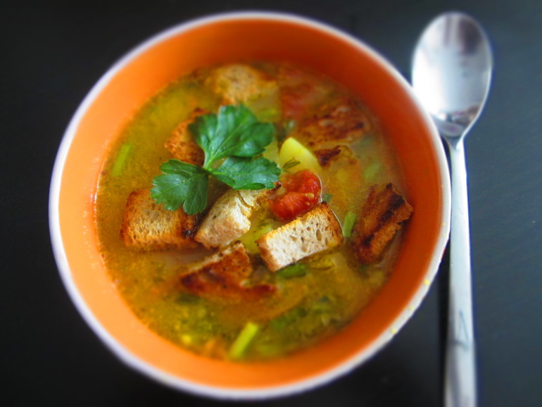 Обязательно, как и любому другому супу, даем настояться минут 15, разливаем по тарелкам, добавляем гренки и кушаем с удовольствием!