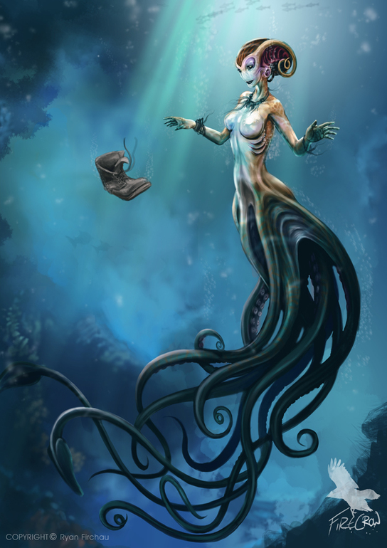 - в океане