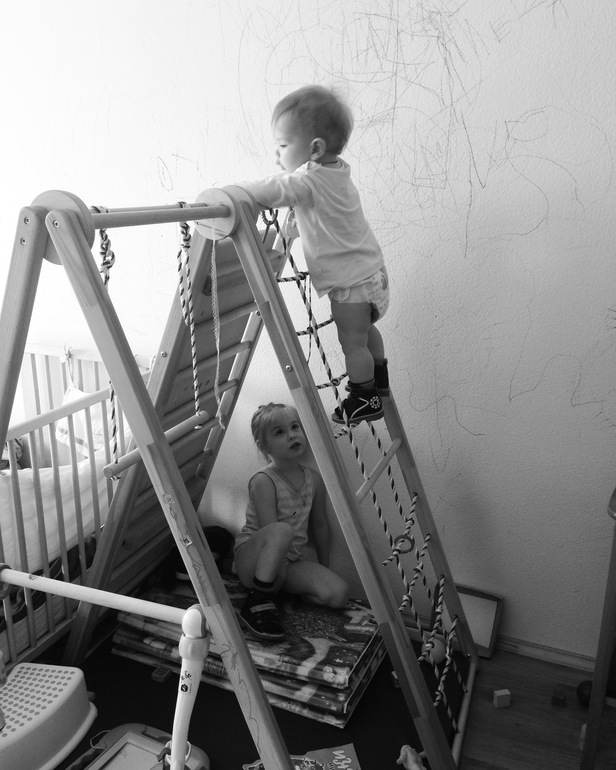 мы с дочкой болеем, а сын не дожидаясь совершенногодия покорил лестницу, веревочную!
