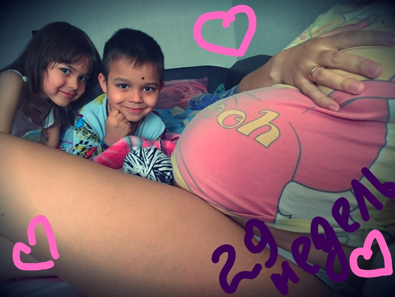 Сына родила в 35,6 недель, дочь пыталась родиться в 35,5 недель, но схватки остановили в роддоме и проходила до 38 ровно. С сыном не повезло, там воды отошли и поехали рожать. Так что мужа готовлю и сама готовлюсь. В эту Б животик малюська, ну мне как то это только на руку, уборка, готовка, прогулки даются можно сказать легко - для этого срока. Напрягает аппетит, очень выражен стал, до 20 недель был токс, потом начала кушать хорошо, но все же тошнило на всякую химию, яблоки создавали тяжесть в желудке и вылезали назад, мандарины даже на запах не выношу до сих пор, курица, селедка это враг народа для меня стали, шоколад вылазил назад, запах жареных котлет заставлял дышать глубже, чтобы не стошнило прям на саму себя и вот только сейчас я стала себя чувствовать человеком, стала есть сладкое, что не могла есть, мучное, мясо, кроме курицы,курица видимо теперь на всю жизнь останется в прошлом, как и селедка. Рыбу ем, а то тоже кроме камбалы никакую не могла. Но вот запахи на стики, порошки, туалетную воду, так и остались до мурашек 🤢, передергивает и хочется чем нибудь вкусным занюхать, какой нибудь булочкой 🥐🍞.Так что вес мой начал расти, что не удовлетворяет моего врача))). В конце июня собираюсь на УЗИ, если все в норме, то оно будет финальным.Переживаю за шейку, она у меня вечно спешит вперёд паровоза, но Бог даст, все будет хорошо 🙏! Мелкая в пузе кувыркается, нравится ей переворачиваться ногами вниз, от этого очень больно и сразу начинаются треники. Думаю она там волосы папины отращивает, кучерявые и густые 🤡, изжога говорит за это))). В общем как то так, можно сказать все терпимо и пока терпения хватает, хотя ночами переворачиваться с бока набок очень тяжело, порой даже очень больно. Ну и фото моих карапузов, которые очень любят свою сестричку в пузике