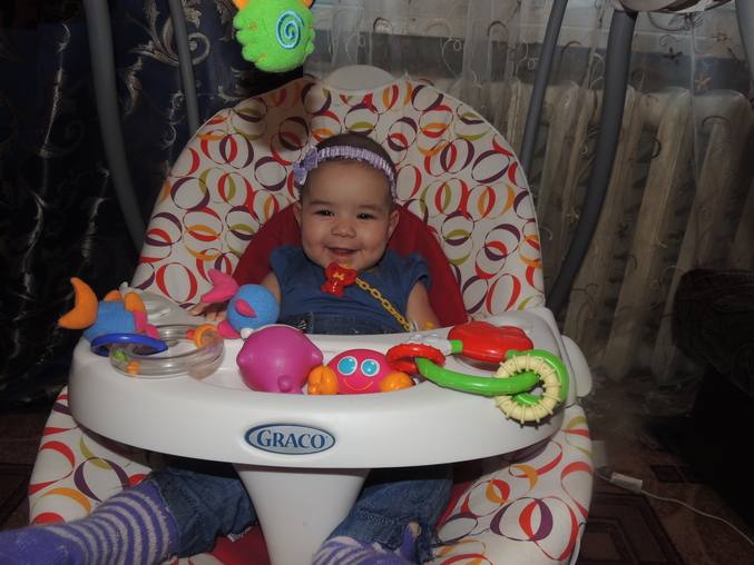 сегодня были на приеме,сделали нам наконец то прививки,аж три штуки,бедненькая моя крошечка,плакала(((.Взвесили ее,стал вес 7700 и 69 см,хотя дома мы ее 100 раз измеряли и она 72 см,да и вещи на 74 нам маленькие стали,одеваю уже на 80)))),ну каждая медсестра мерит по своему.Самое главное,что здоровенькая моя крошечка.Выписали массаж,пантогам сказали еще хотя бы 10 дней попить,набраться сил и терпения,дочке он нужен.