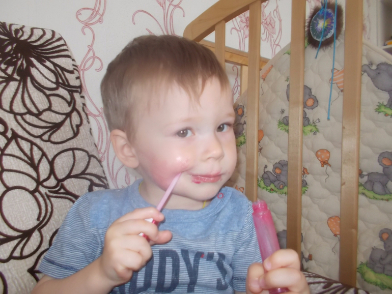 64. Предложите детям яркую помаду, которой можно оставлять следы «поцелуйчиков» на родных и близких.
