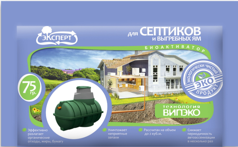 Химический препарат подходит для очистки септиков и выгребных ям, расположенных во дворе дома, квартиры, на даче, в огороде и саду.